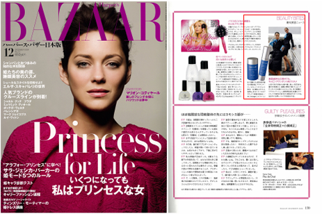 フランス ニナファーム社がフランスとアメリカで発売している キャビンアテンダント向けコスメ「アクティアージュ シリーズ」の 美容液とサプリメントが「BAZAAR 12月号」に掲載されました。